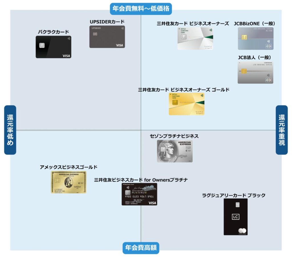 上記の観点からカードを選ぶと良いでしょう。カードは長く使うものなので、見た目やブランドのかっこよさよりも、自社の状況に合ってているかを優先することが大切です。