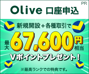 | 内容 | SBI証券の仲介口座を開設後、 Oliveフレキシブルペイ(クレジットモード)による投信積立や株式等の取引で、 最大21,100円相当のVポイントがもらえる複合キャンペーン 特典1.【100円相当】口座開設+Vポイント認証+エントリー 特典2.【上限7,000円相当】クレカ積立金額の5%還元(開設月+2か月後)+NISA口座で上限アップ 特典3.【上限14,000円相当】投資信託・株式等の取引達成で還元(開設月+3か月後) ┗ 投資信託スポット:3万円以上 → 1,000p ┗ 国内株式(現物)3万円以上 → 1,000pt ┗ 米国株(現物)200USD以上 → 8,000pt(期間限定増額) ┗ 債券(円建10万円以上/外貨建:金額不問)→ 最大4,000pt |
