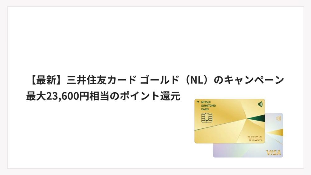 【最新】三井住友カード ゴールド(NL)のキャンペーン|最大23,600円相当のポイント還元