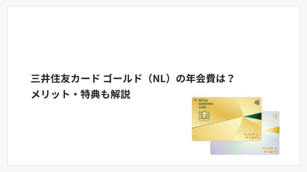 三井住友カード ゴールド(NL)の年会費や基本情報、メリットや一般カードとの違いを解説しました。