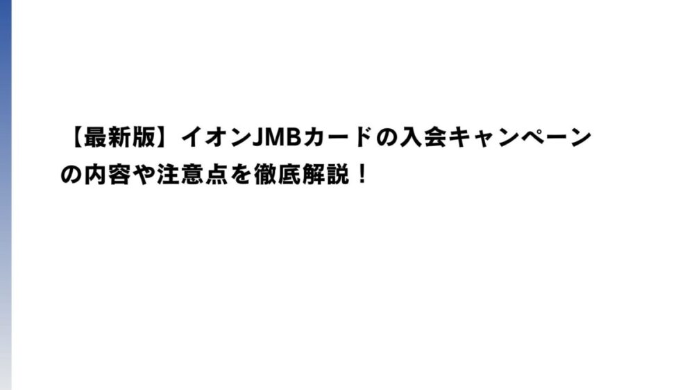 【2026年3月最新】イオンJMBカードの入会キャンペーンの内容や注意点を徹底解説!
